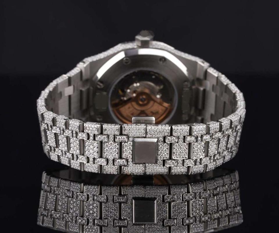 นาฬิกาหรูหราประดับเพชรเต็มเรือน ระบบจักรกล VVS มอยส์ซาไนต์ สไตล์ฮิปฮอป ตัวเรือนสแตนเลสสตีลสั่งทำพิเศษสำหรับผู้ชายและผู้หญิง