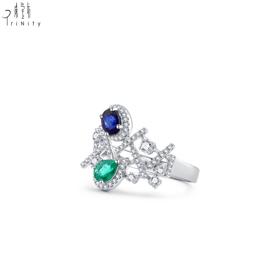 ชื่อสินค้า:แหวนเพชรประดับอัญมณีธรรมชาติสองเม็ด ทองคำขาว 18K เครื่องประดับหรูหรา
