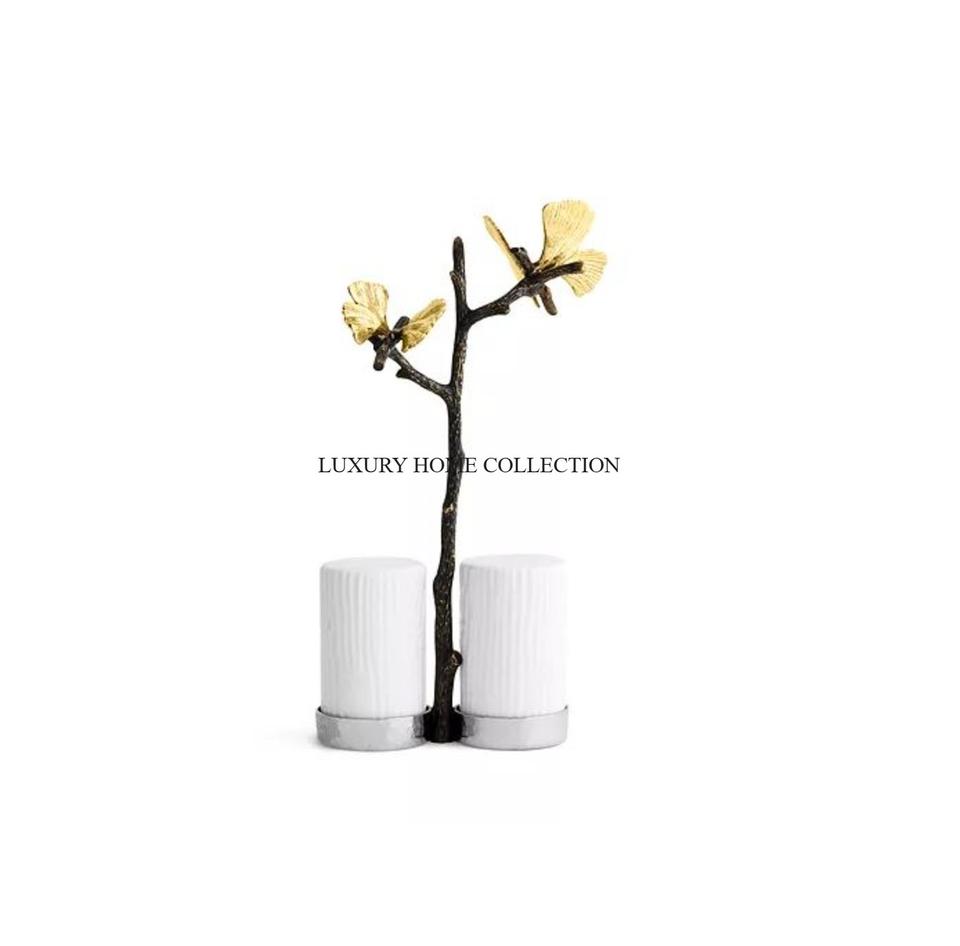 ชุดเกลือและพริกไทยโลหะและหินอ่อนสุดหรูระดับไฮเอนด์ที่มีลวดลายที่สลับซับซ้อนและโครงสร้างที่ทนทานสำหรับการตกแต่งบ้านที่หรูหรา