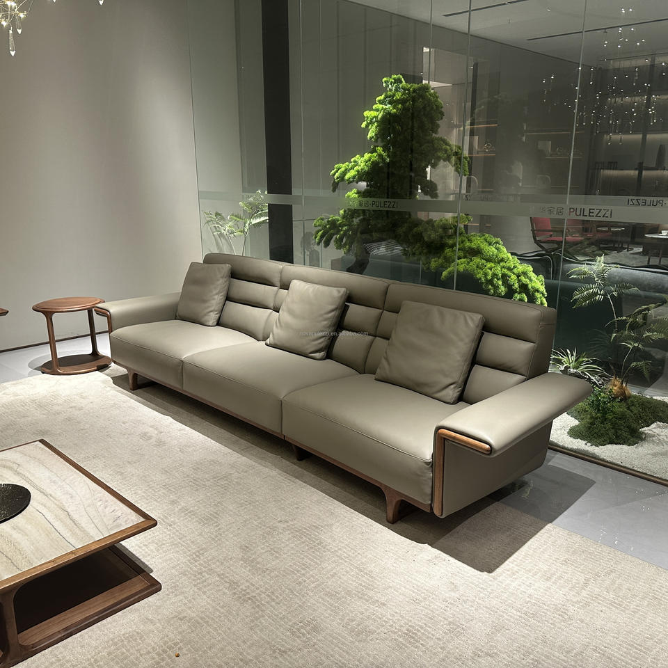 ชุดโซฟาหนังวอลนัทสำหรับห้องนั่งเล่นสไตล์อเมริกาเหนือหรูหราระดับไฮเอนด์ดีไซน์คลาสสิกและดั้งเดิม