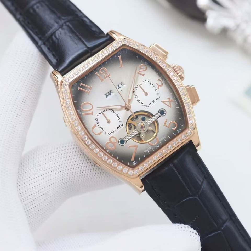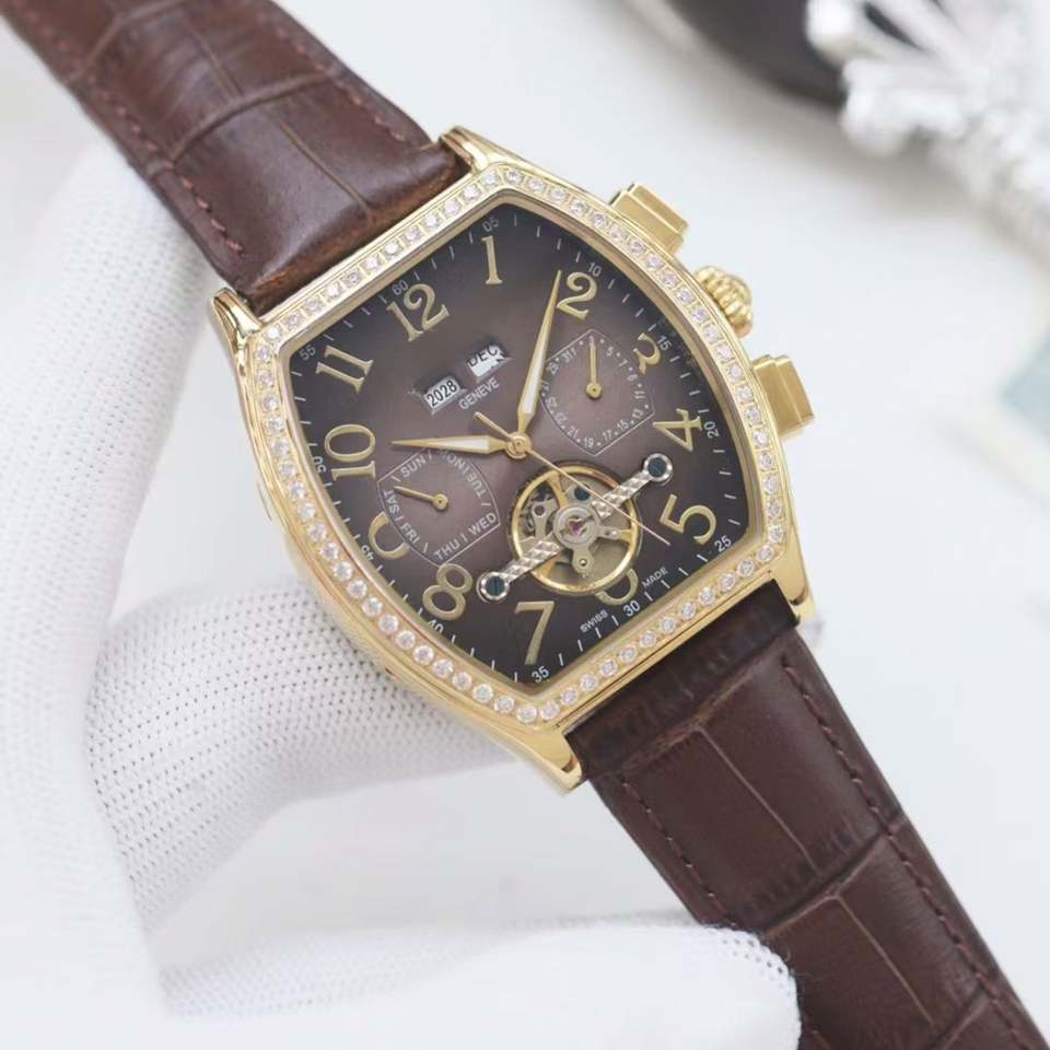 นาฬิกากลไกอัตโนมัติคุณภาพสูงระดับไฮเอนด์ ฟังก์ชั่นซับซ้อน ดีไซน์มีเสน่ห์ ทันสมัยมาก สายหนังจระเข้สำหรับนักธุรกิจ