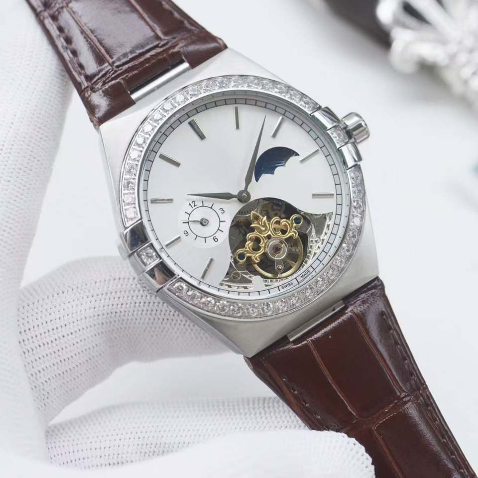นาฬิกาคลาสสิคคุณภาพสูงระดับไฮเอนด์ ขนาด 41 มม. ระบบออโตเมติกหรูหรา พร้อมฟังก์ชั่นวันที่ สำหรับผู้ชายและผู้หญิง ตัวเรือนโลหะผสม สายหนังจระเข้ ดีไซน์เรียบง่าย