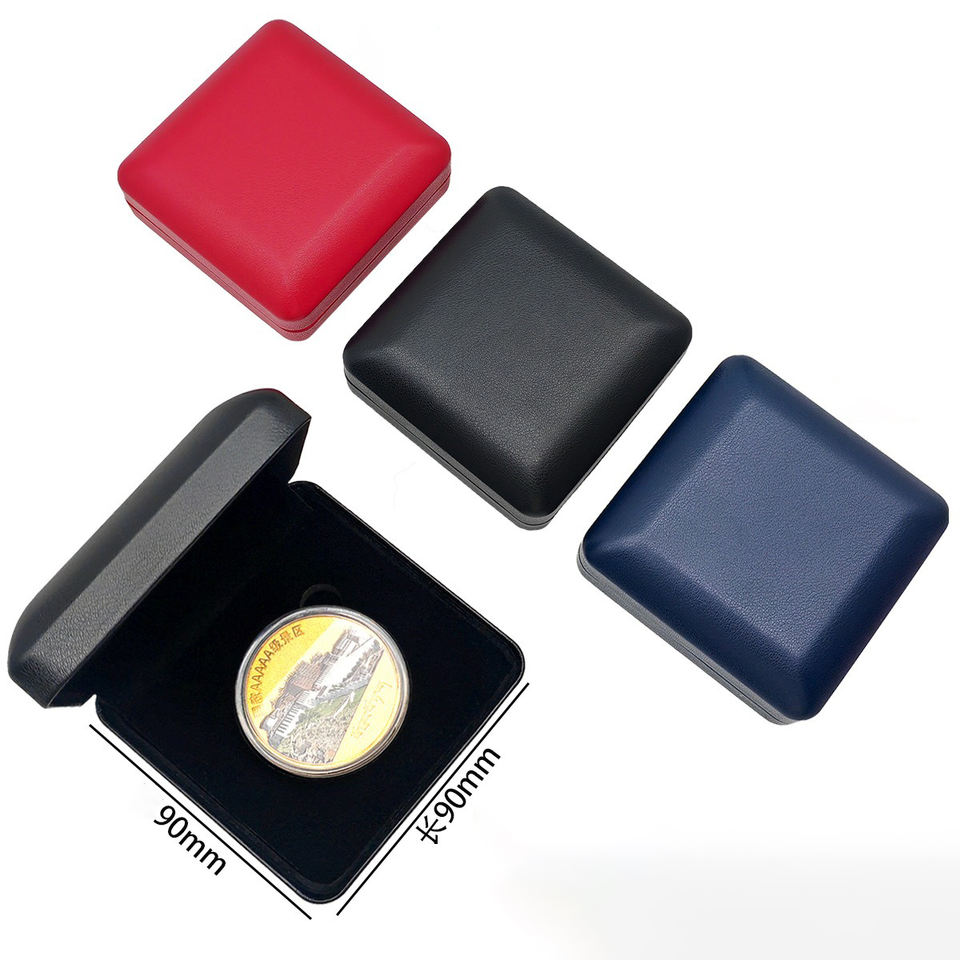 High-end PU Creative Metal Square Commemorative Coin Gift Box for Zodiac Award Medal & Brooch Collection