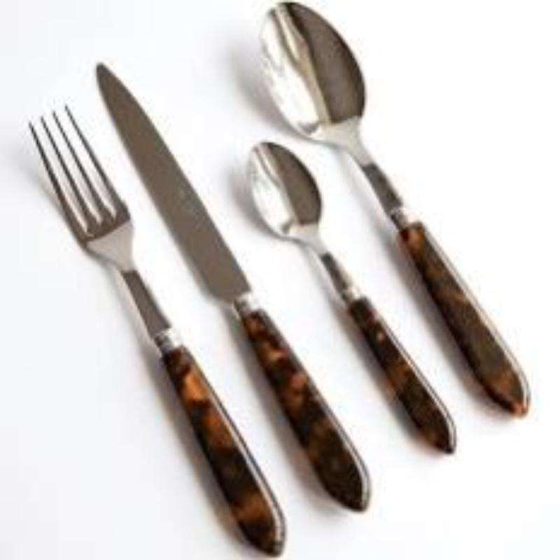 ชุดช้อนส้อมมีดมือจับเรซินระดับสูงพร้อมสแตนเลสป้องกันสนิมและรายละเอียดที่ซับซ้อนเพื่อสัมผัสการรับประทานอาหารสุดหรู