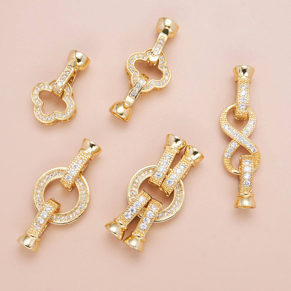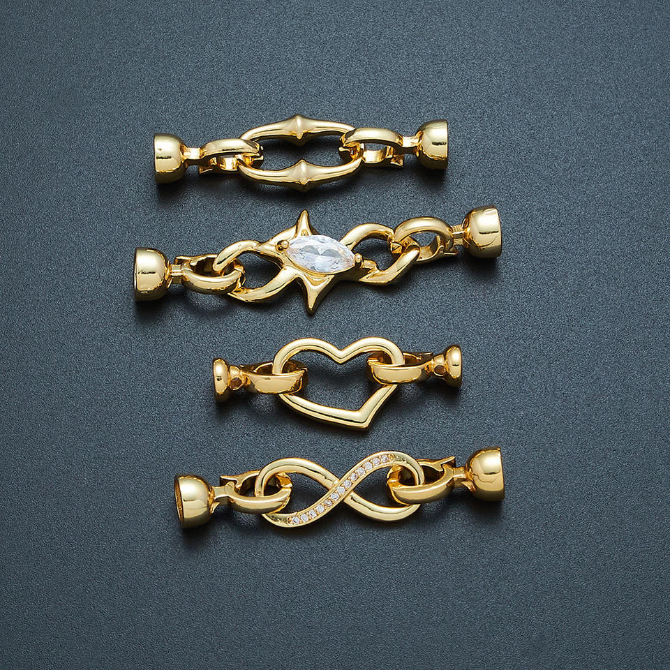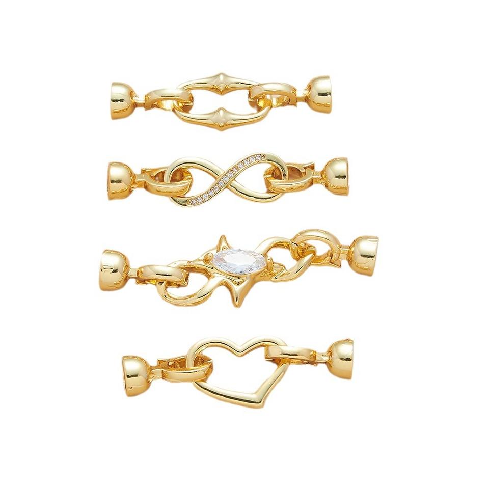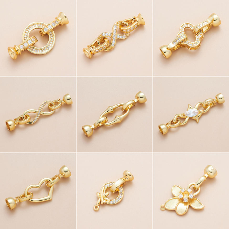 ตัวล็อกสร้อยคอแบบฝังสีสันสดใสคุณภาพสูง รูปทรงกลม/หัวใจ/ดอกไม้ ตัวล็อกกำไลข้อมือ อุปกรณ์ตกแต่งเครื่องประดับ DIY