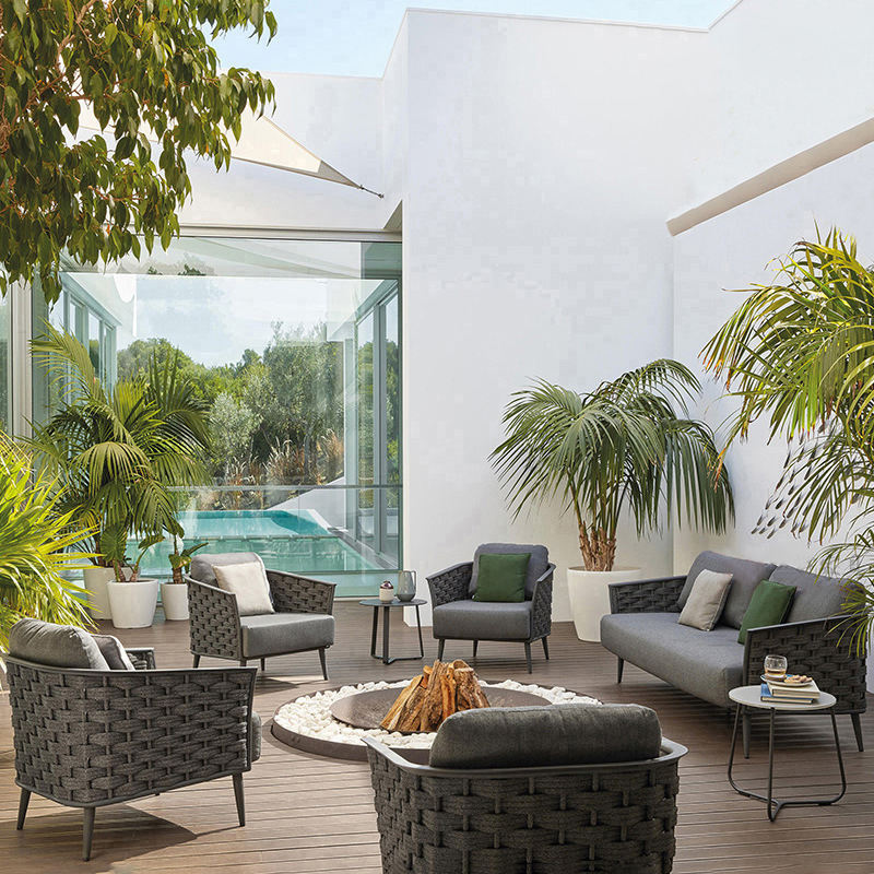 ชุดสวนโซฟาหวายเชือกทอระดับไฮเอนด์เฟอร์นิเจอร์กลางแจ้งหรูหรา