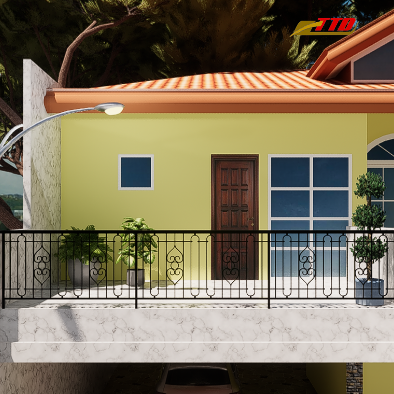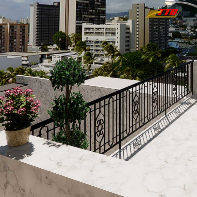 ราวระเบียงระดับไฮเอนด์สำหรับการก่อสร้างเหล็กดัดภายนอกอาคารสีดำหรูหราออกแบบได้ตามต้องการสำหรับความสง่างามในที่พักอาศัย
