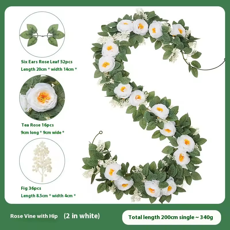 High-end fruit peony rattan wedding decoration wall hanging Artificial flower encryption rose leaf simulation camellia