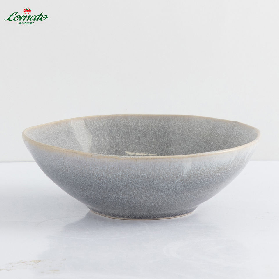 ชุดเครื่องถ้วยชามเคลือบเงาสีเทาแบบรีไซเคิล รูปทรงไม่สม่ำเสมอ ให้พื้นผิวธรรมชาติ พร้อมเน้นความเป็นมิตรต่อสิ่งแวดล้อม