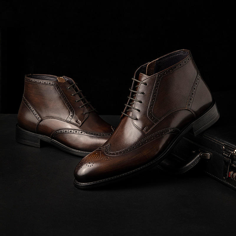 รองเท้าบูทหนังแท้สำหรับผู้ชายคุณภาพสูงแบบผูกเชือกระบายอากาศได้รองเท้าบูทหนังลำลองสำหรับนักธุรกิจ