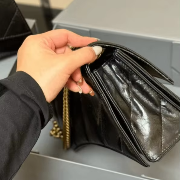 กระเป๋าหนังลูกวัวคุณภาพสูงของแท้กระเป๋าสะพายไหล่, กระเป๋าถือแฟชั่นหนังลูกวัวสำหรับสุภาพสตรีสายโซ่เหล็กอุปกรณ์ฮาร์ดแวร์ระดับไฮเอนด์