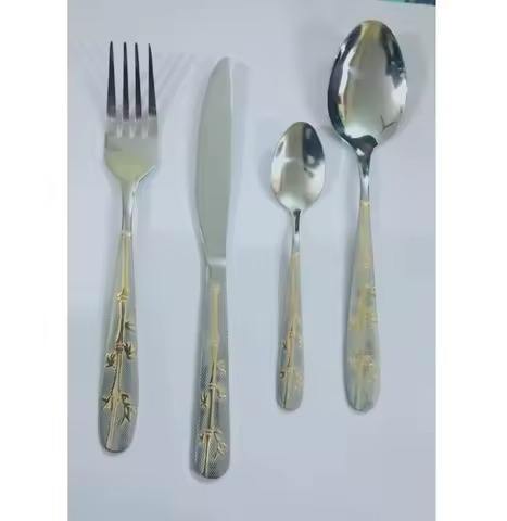 เซตช้อนส้อมโลหะพิมพ์ลายดอกไม้สุดหรูเรียบง่ายเหมาะสำหรับทุกโอกาสในการทำอาหาร