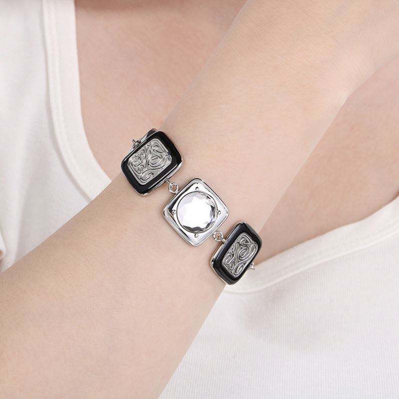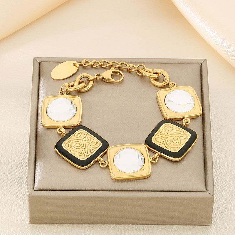 สร้อยข้อมือทำจากแก้วทรงสี่เหลี่ยมสีขาวเกรดสูงแบบย้อนยุคทำจากสเตนเลสสตีลรูปทรงเรขาคณิตแบบหยดน้ำมันขายส่ง