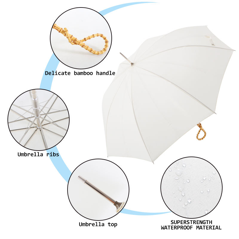 ร่มโค้งทรงสูง ด้ามจับไม้ไผ่ ร่มกึ่งอัตโนมัติแบบเปิดตรง ร่มกันแดดแบบมีรูที่ด้ามจับ