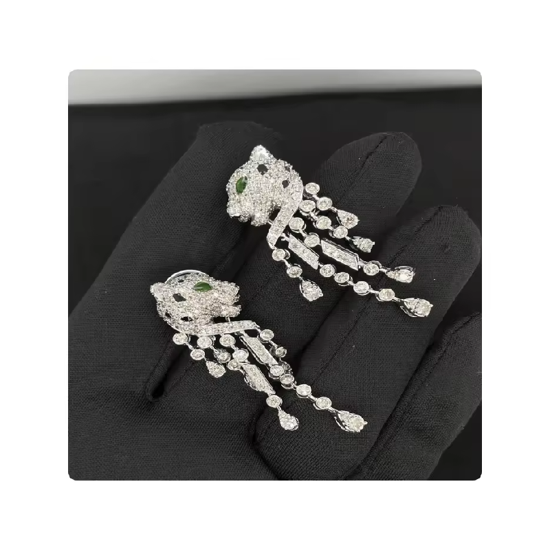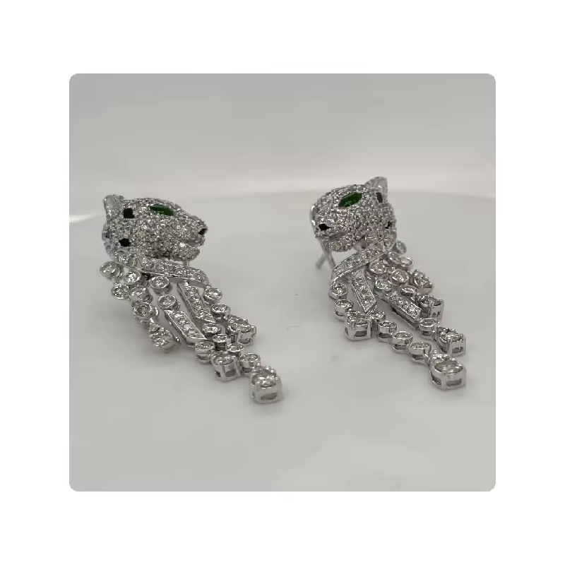 ต่างหูทองคำ 14K ลายเสือดำ ดีไซน์สวยงาม ประดับเพชร CVD จากอินเดีย ต่างหูทองคำขาว สินค้าขายดี