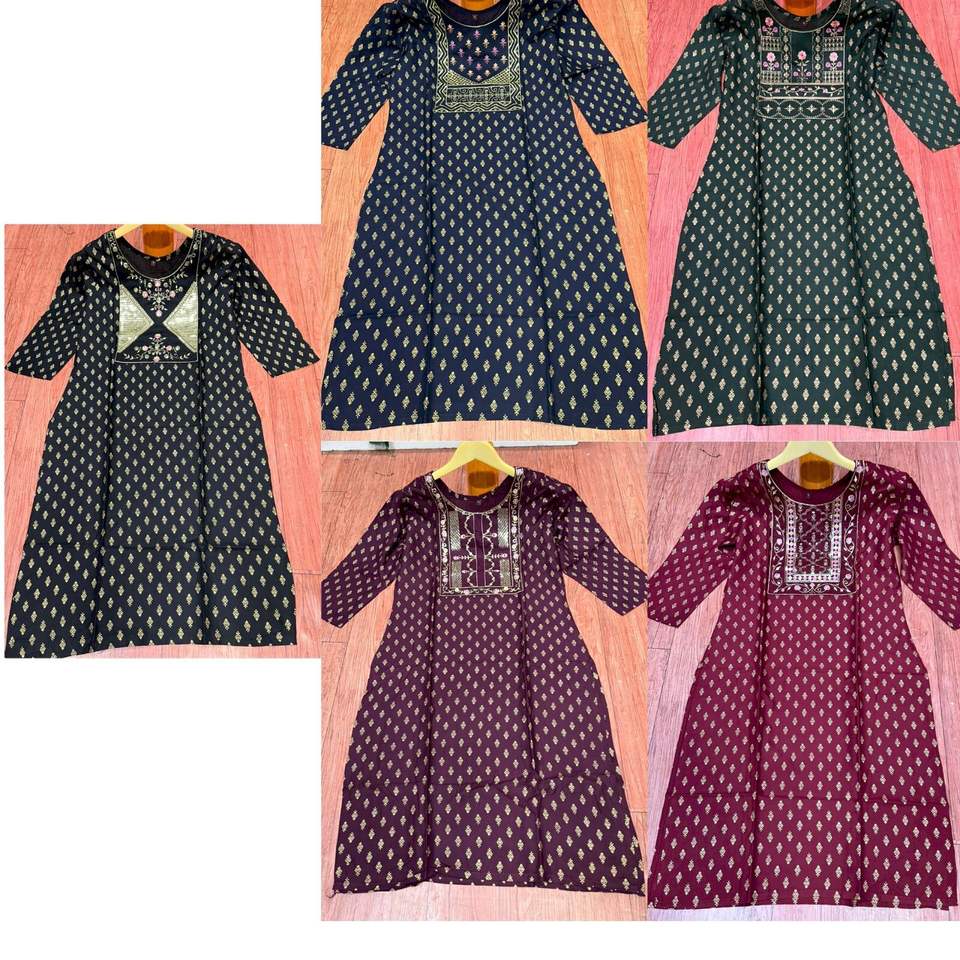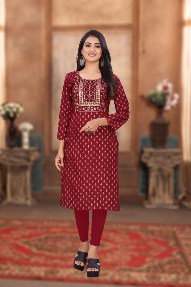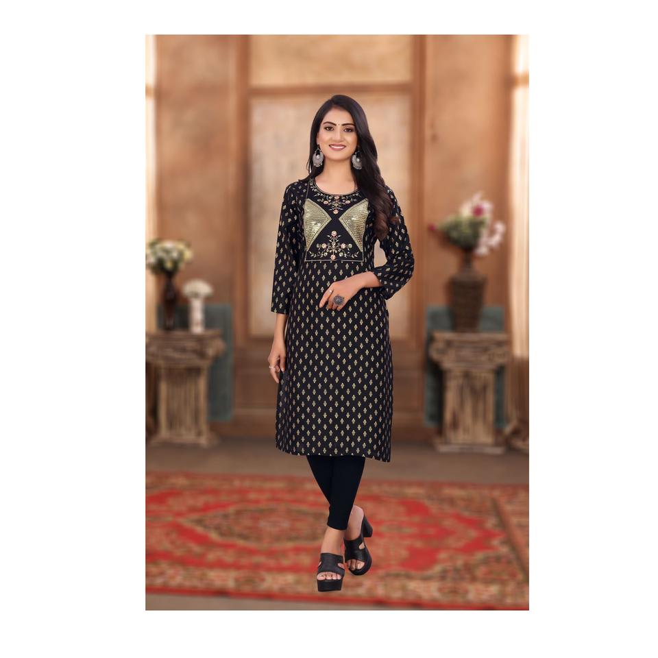 เรยอน 14 กก. ตามความต้องการสูงพร้อมฟอยล์พิมพ์ Kurti สําหรับผู้หญิงที่มีงานลวดลายลําดับเย็บปักถักร้อยที่สวยงาม