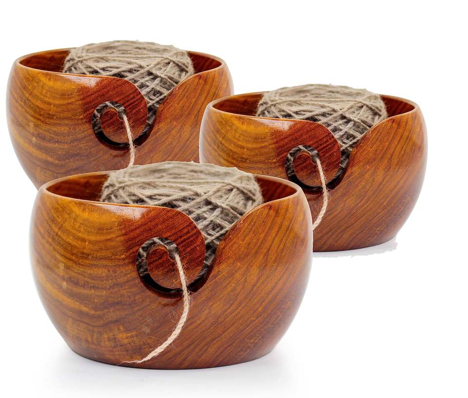 ชามไหมพรมทำจากไม้สำหรับใช้ถักไหมพรมผลิตจากอินเดีย