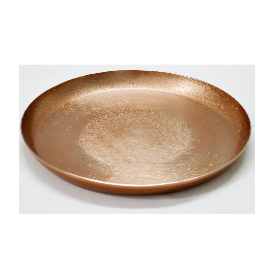 จานเสิร์ฟโลหะทองแดงตามความต้องการสูงจานอาหารค่ําตกแต่งที่ชาร์จโลหะที่หรูหราสําหรับอาหารเย็นร้านอาหารของโรงแรม