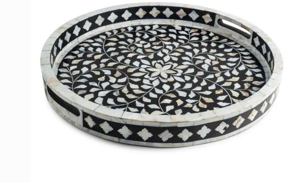 High on Demand Designer Mother of Pearl Inlay Serving Tray for Coffee Table and Dining Available at Factory Price