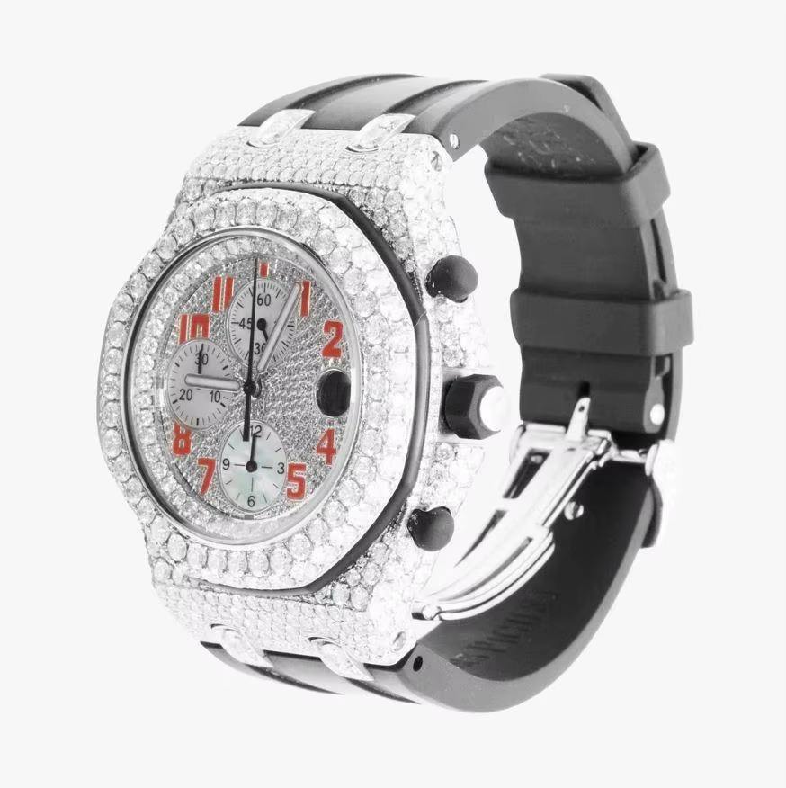 High on Demand Fashion Black Rubber Strap Diamond Watch for Hip Hop Style Celebrations and Daily Wear Available for Export Price