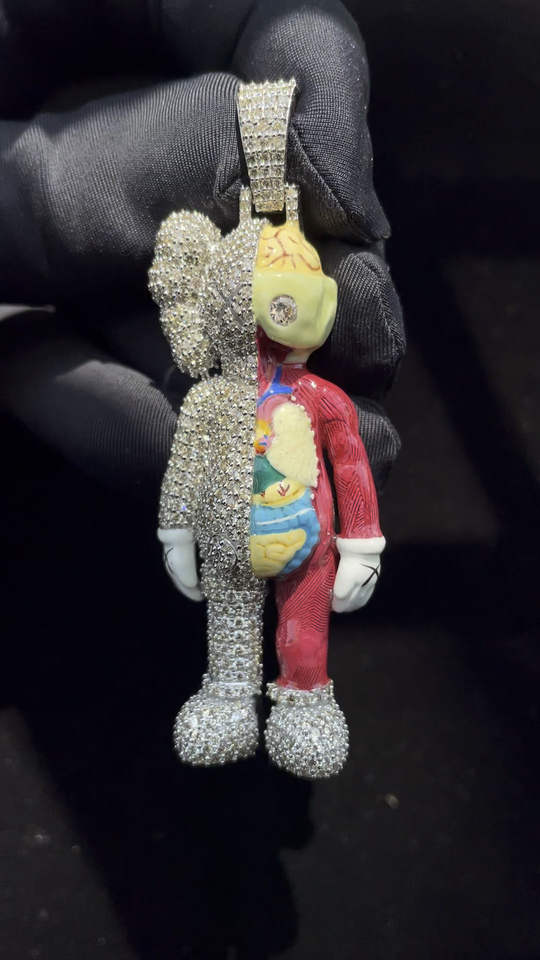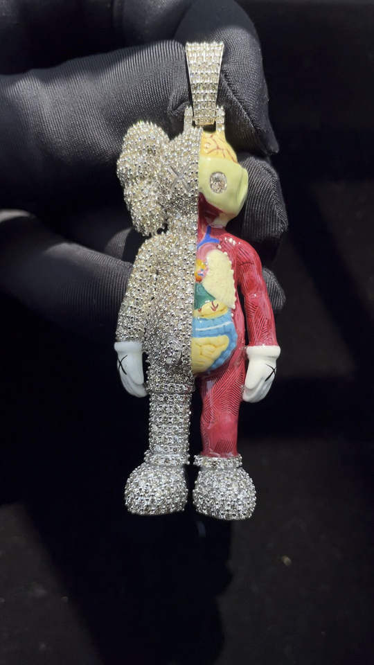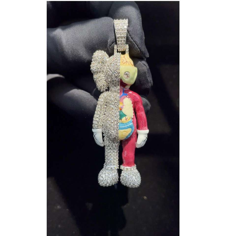จี้ห้อยคอแบบฮิปฮอป 3 มิติเต็มรูปแบบ ประดับด้วยมอยส์ซาไนต์สี VVS/D เงินแท้ 925 ผลิตในอินเดีย