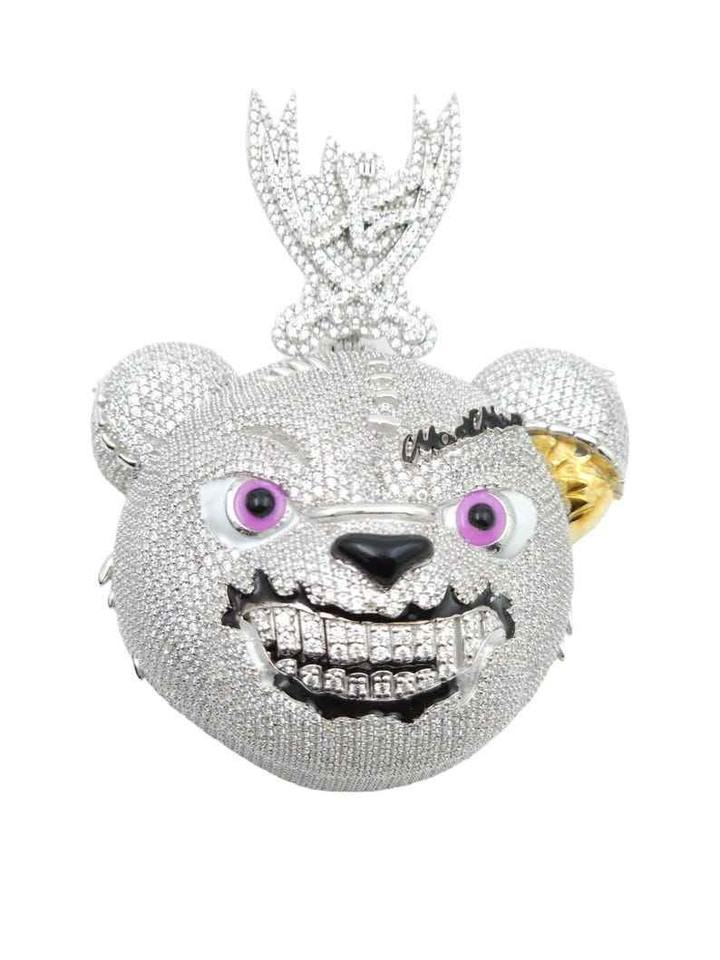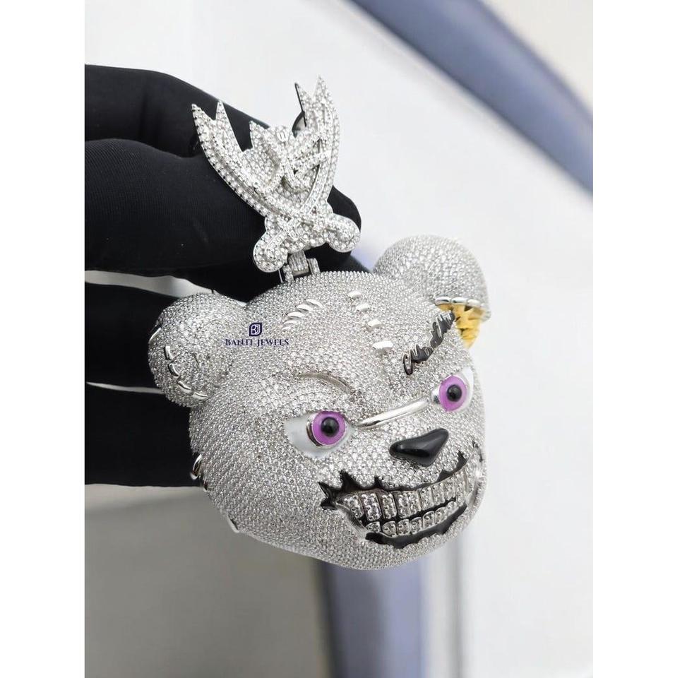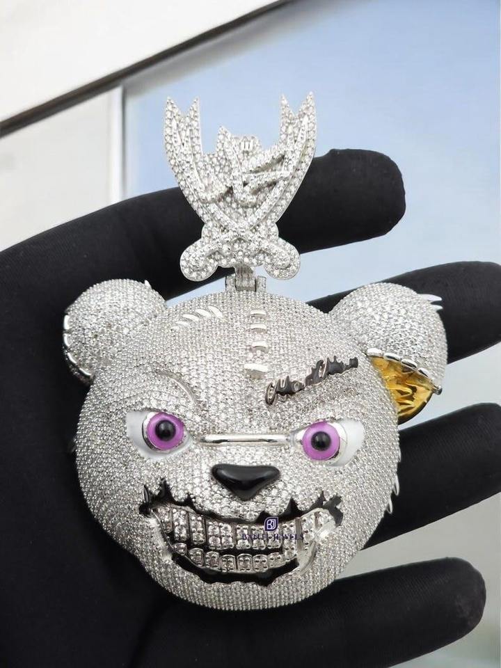 สร้อยคอจี้รูปหมีประดับเพชรโมอิสซาไนต์ VVS ชุบเงิน สไตล์ฮิปฮอป สำหรับงานปาร์ตี้ สินค้าขายดี ราคาสุดคุ้ม