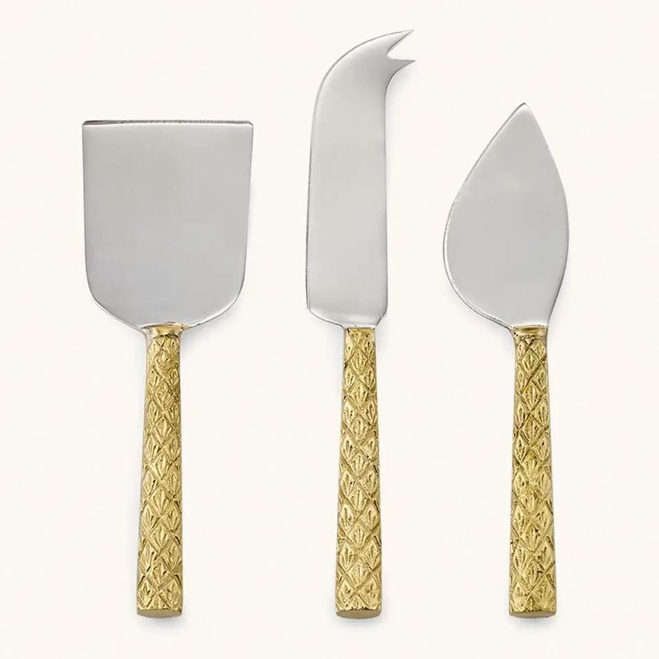 ชุดมีดชีสโลหะเงินคุณภาพสูง สำหรับงานแต่งงานและงานปาร์ตี้ ด้ามจับทองเหลืองอย่างดี ใช้งานได้ยาวนาน
