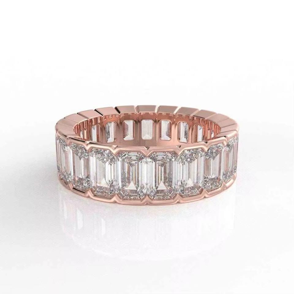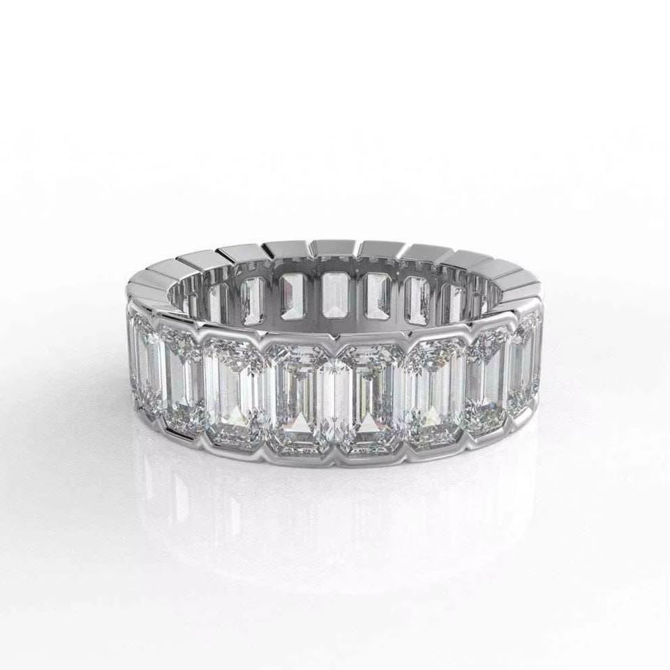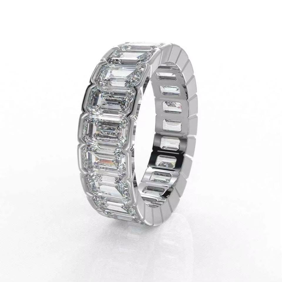 แหวนเพชรโมอิสซาไนต์ทรงเอเมอรัลด์สีเงินทันสมัย ยอดนิยมสูง เหมาะสำหรับงานหมั้นหรือโอกาสพิเศษ มีจำหน่ายในราคาโรงงาน