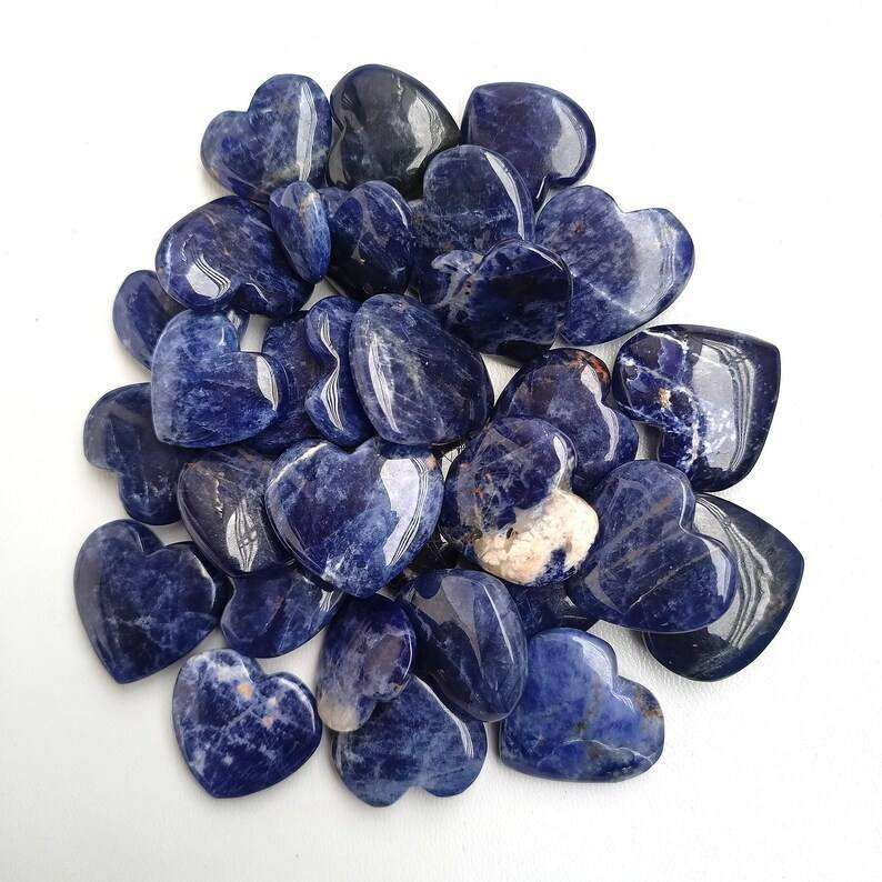 คริสตัลรูปหัวใจป่องโซดาไลต์ธรรมชาติเป็นที่ต้องการสูงสำหรับร้านอภิปรัชญาและชุดคริสตัลมีจำหน่ายในราคาที่เหมาะสม