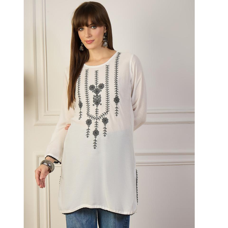 ชุดคุर्ติสั้นผ้าเรยอนสุดฮิต ดีไซน์ทันสมัย เหมาะสำหรับใส่ในชีวิตประจำวัน พร้อมงานปักด้ายสไตล์ชาติพันธุ์ สำหรับแฟชั่นทุกวัน ราคาขายส่ง