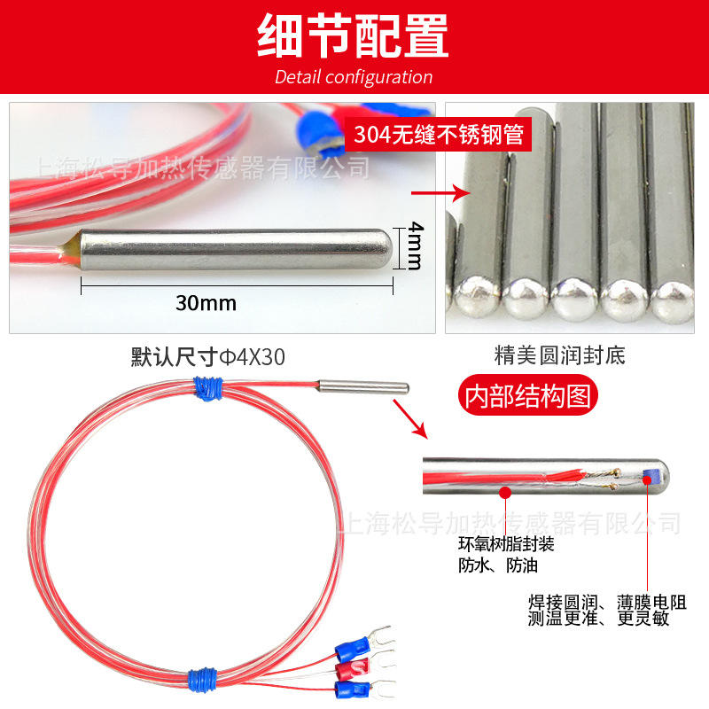 หัววัดอุณหภูมิ Pt100 RTD ความแม่นยำสูง 430 มม. 500 มม. ระบบสาม/สองสาย