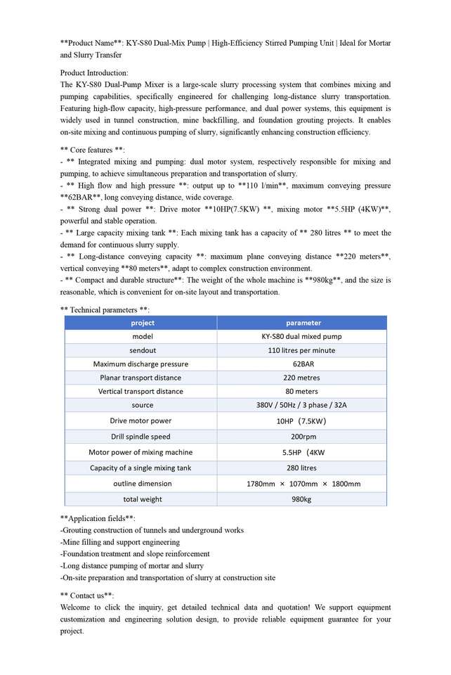 โครงการส่งของเหลวข้นความดันสูงทางไกลด้วยปั๊มผสมคู่ ระยะแนวนอน 220 เมตร แนวตั้ง 80 เมตร แรงดันการส่ง 62 บาร์