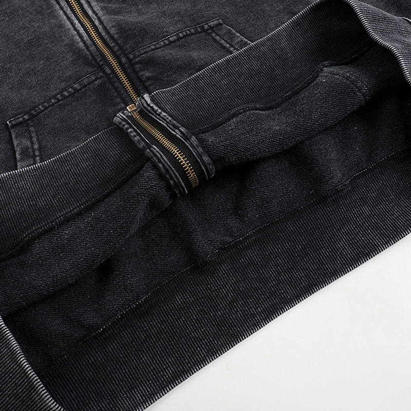เสื้อฮู้ดแฟชั่นผ้าคอตตอนผ้า100% ปักลายมีซิปปกติผ้าเกล็ดปลา