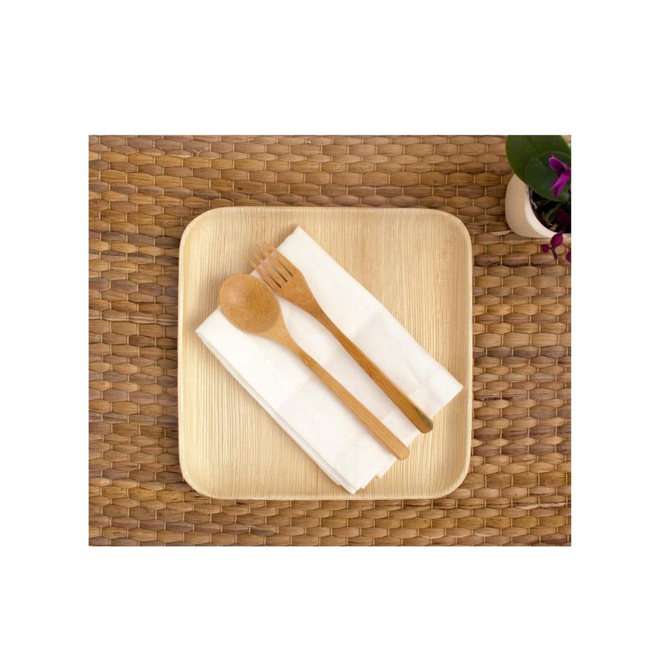 แผ่นไม้ไผ่ทรงสี่เหลี่ยมสำหรับใส่อาหารในงานเลี้ยงดีไซน์100% แผ่นไม้ปาล์มอาเนก้าธรรมชาติย่อยสลายได้ตามธรรมชาติย่อยสลายได้ทางชีวภาพ