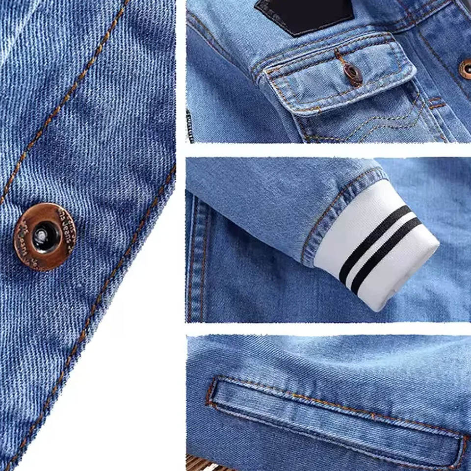 แจ็คเก็ตยีนส์ผู้ชายคุณภาพสูง ผ้าฝ้าย 100% สกรีนลายปักโลโก้ สไตล์สตรีทแวร์