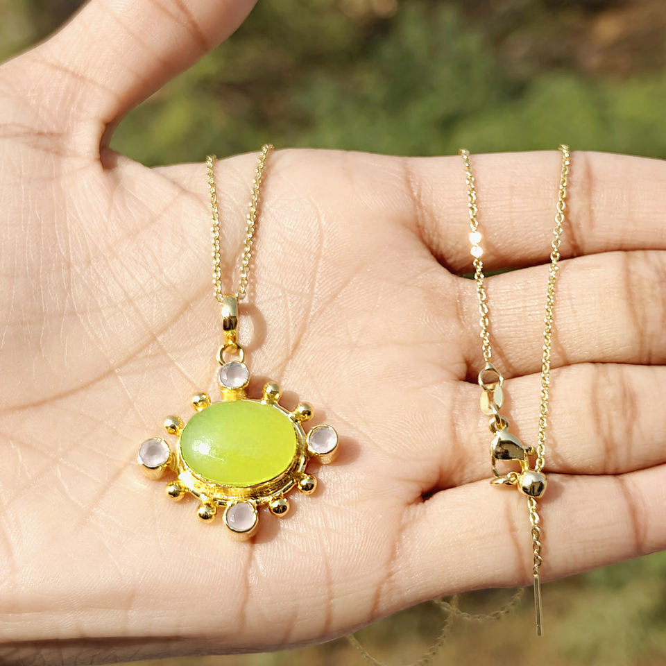 สร้อยคอทอง 18k คุณภาพสูง ชุบทอง ประดับด้วยหยกพรีไนต์และจี้ประดับด้วยลูกปัดสีชมพู ขายส่งเครื่องประดับสร้อยคอ