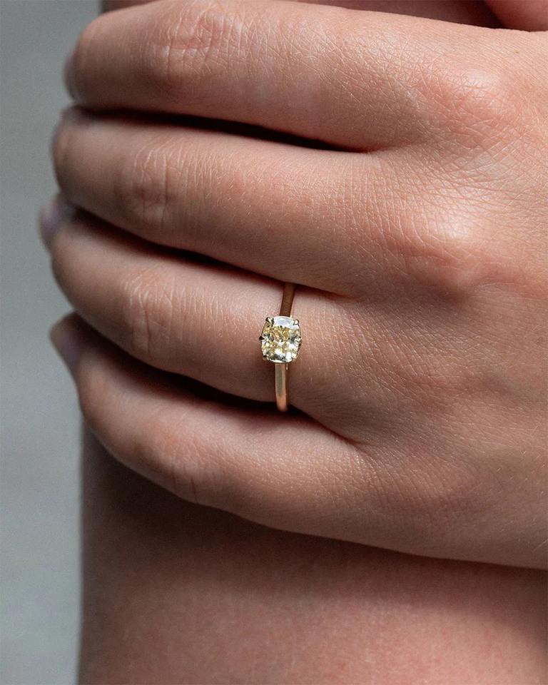ที่มีคุณภาพสูงในห้องปฏิบัติการ1CT เติบโตสีเหลืองแหวนหมอนอิงตัดทอง14K เครื่องประดับงานแต่งงานขายส่งผู้ผลิตออนไลน์