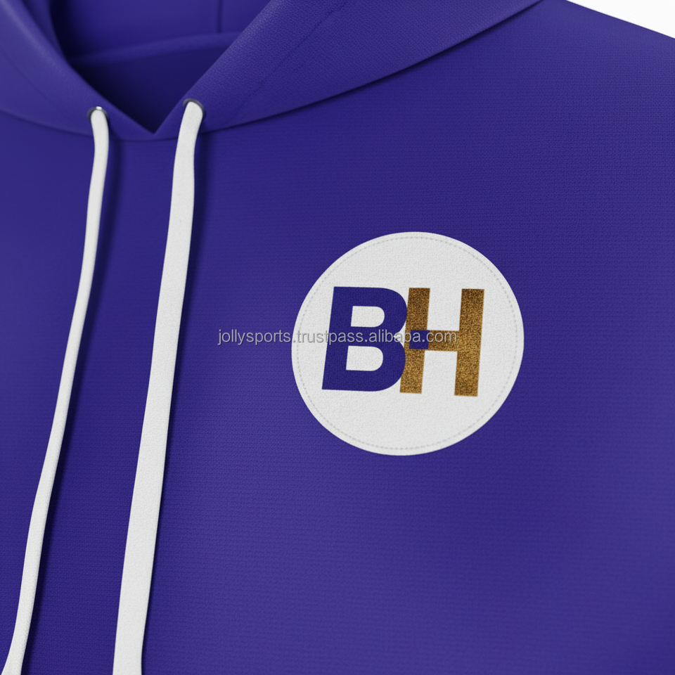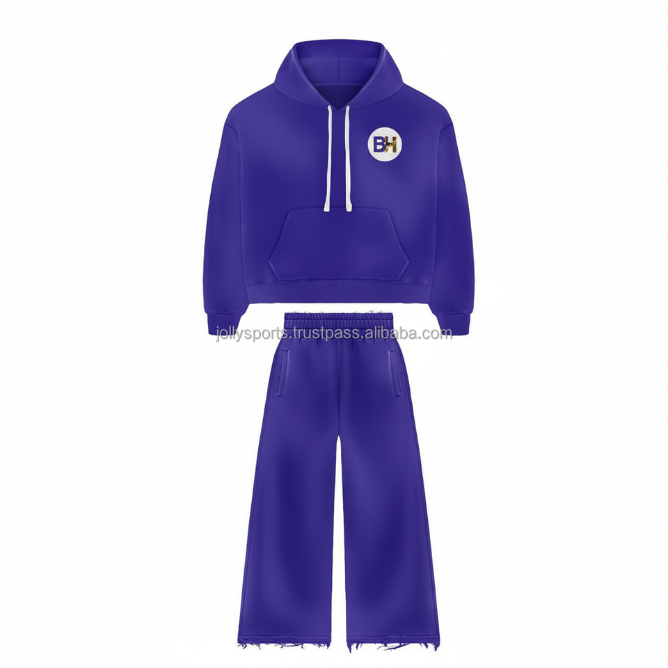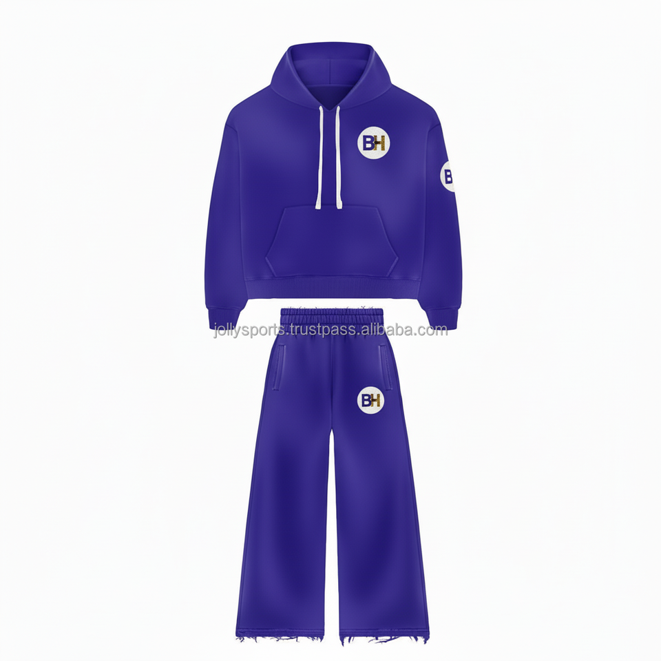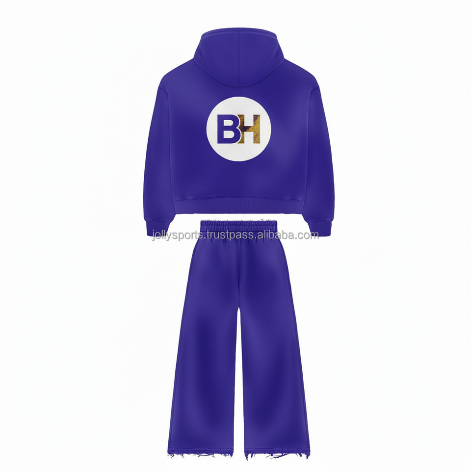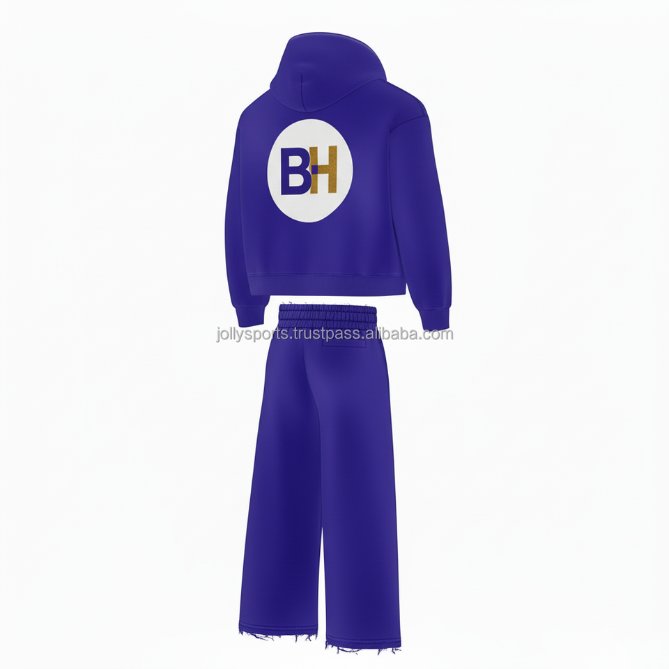 ชุดวอร์มผ้าฝ้ายโพลีเอสเตอร์ขนแกะ365 GSM สีฟ้าเนื้อเรียบปักโลโก้