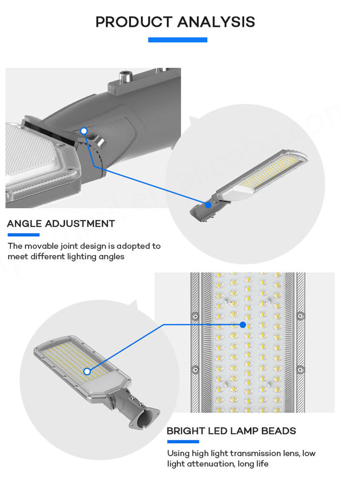 ไฟถนน LED อะลูมิเนียมหล่อ IP65กันน้ำ AC 50W-200W สำหรับใช้กลางแจ้ง