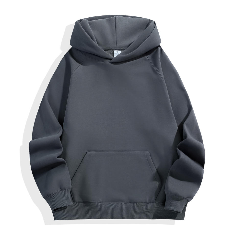 เสื้อฮู้ดผ้าฝ้าย100% 600ก. น้ำหนักมากสำหรับผู้ชายเสื้อฮู้ดพิมพ์ลายพัฟไร้สายสีดำ