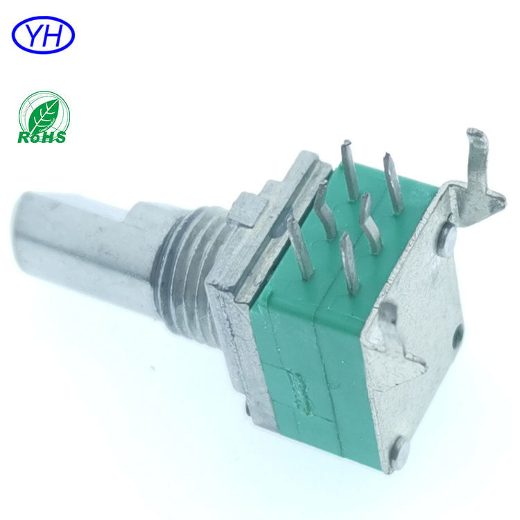 โพเทนชิโอมิเตอร์แบบหมุนคู่แนวนอน 6 ขา 9 มม. คุณภาพสูง พร้อมฟิล์มคาร์บอน 1k 2k 5k 10k 50k 100K โอห์ม พร้อมขายึดสำหรับงานเสียง