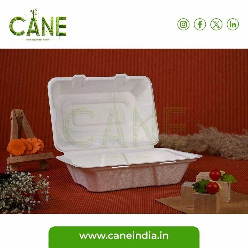 ภาชนะบรรจุอาหารแบบใช้แล้วทิ้งฝาพับทำจากชานอ้อย7x5ย่อยสลายได้ย่อยสลายได้เป็นมิตรต่อสิ่งแวดล้อม
