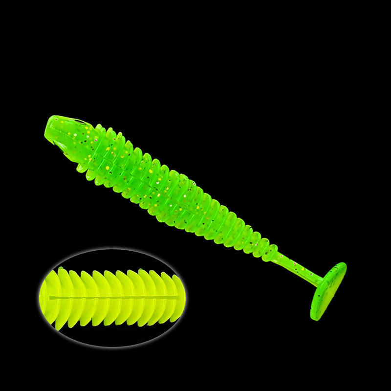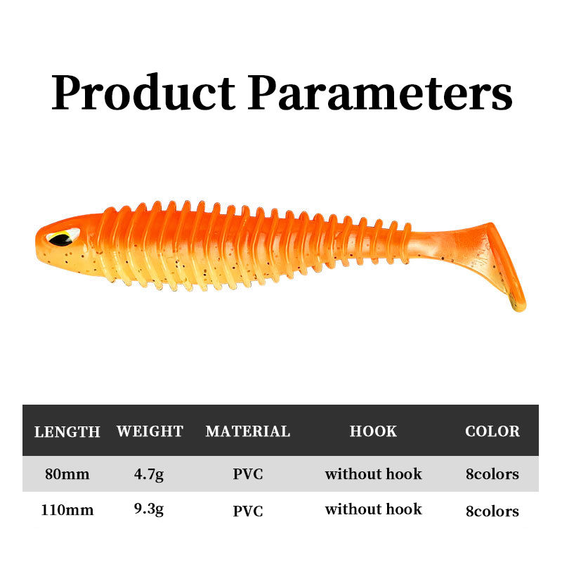 เหยื่อปลอมคุณภาพสูง ขนาด 80 มม. 110 มม. ทำจากวัสดุ PVC แบบมีเกลียว 8 สี รูปทรงตัว T สำหรับตกปลาปอมเพร็ตทอง