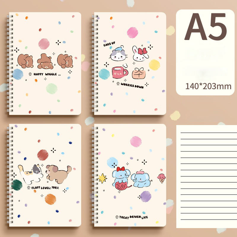 สมุดโน้ตเย็บแบบซาดเดิลสติทช์คุณภาพสูง ขนาด A5 จำนวน 60 แผ่น พิมพ์ลายการ์ตูนน่ารักด้วยเทคนิคซับลิเมชั่น หน้ากระดาษหนา รุ่นของขวัญ