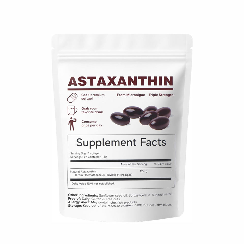 แอสตาแซนธินคุณภาพสูงและวิตามินอีแบบซอฟต์แคปซูล ช่วยเสริมภูมิคุ้มกันและบำรุงผิว
