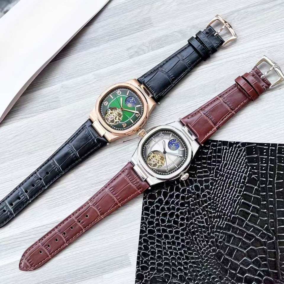 นาฬิกาข้อมือสายหนัง ระบบอัตโนมัติคุณภาพสูง หน้าปัดคริสตัลแซฟไฟร์ กันน้ำ 30 บาร์ ดีไซน์เรียบง่ายสำหรับนักธุรกิจ