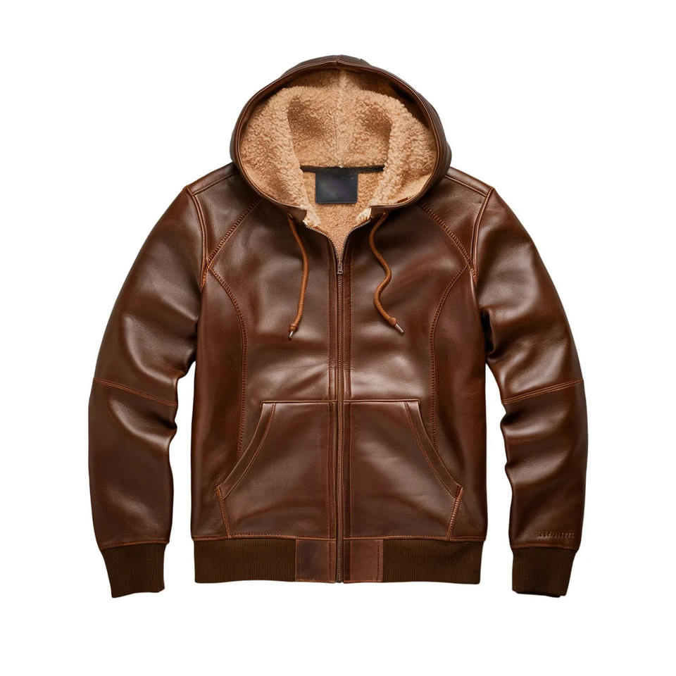 แจ็คเก็ตกันลมสำหรับผู้ชายคุณภาพสูง ขายดีที่สุด แจ็คเก็ตนักบินมีฮู้ดหนัง แจ็คเก็ตอุ่นๆ สไตล์มหาวิทยาลัย เสื้อฮู้ดหนัง