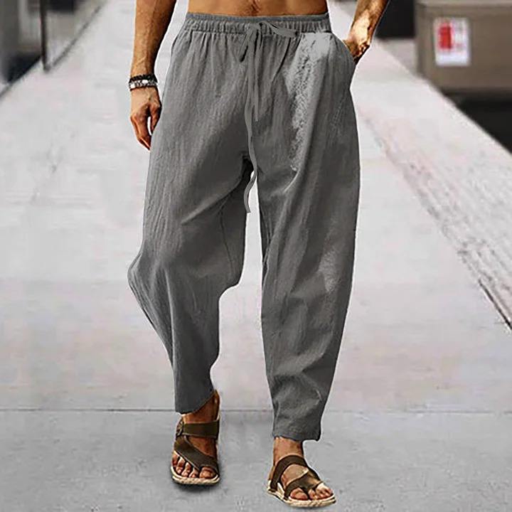 กางเกงขายาวผ้าฝ้ายผสมลินินสำหรับผู้ชาย