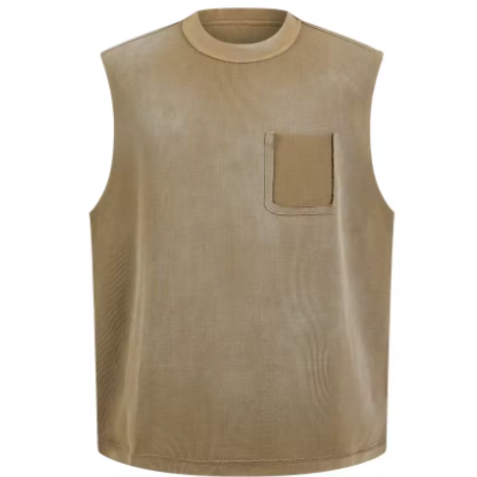 เสื้อกล้ามผู้ชายคุณภาพสูง ระบายอากาศได้ดี สไตล์สตรีทแฟชั่น ทรงเรโทร ตัดสั้น ทรงหลวม ไม่รัดรูป แขนกุด ผ้าฝ้าย 100% ซักนุ่มพิเศษ