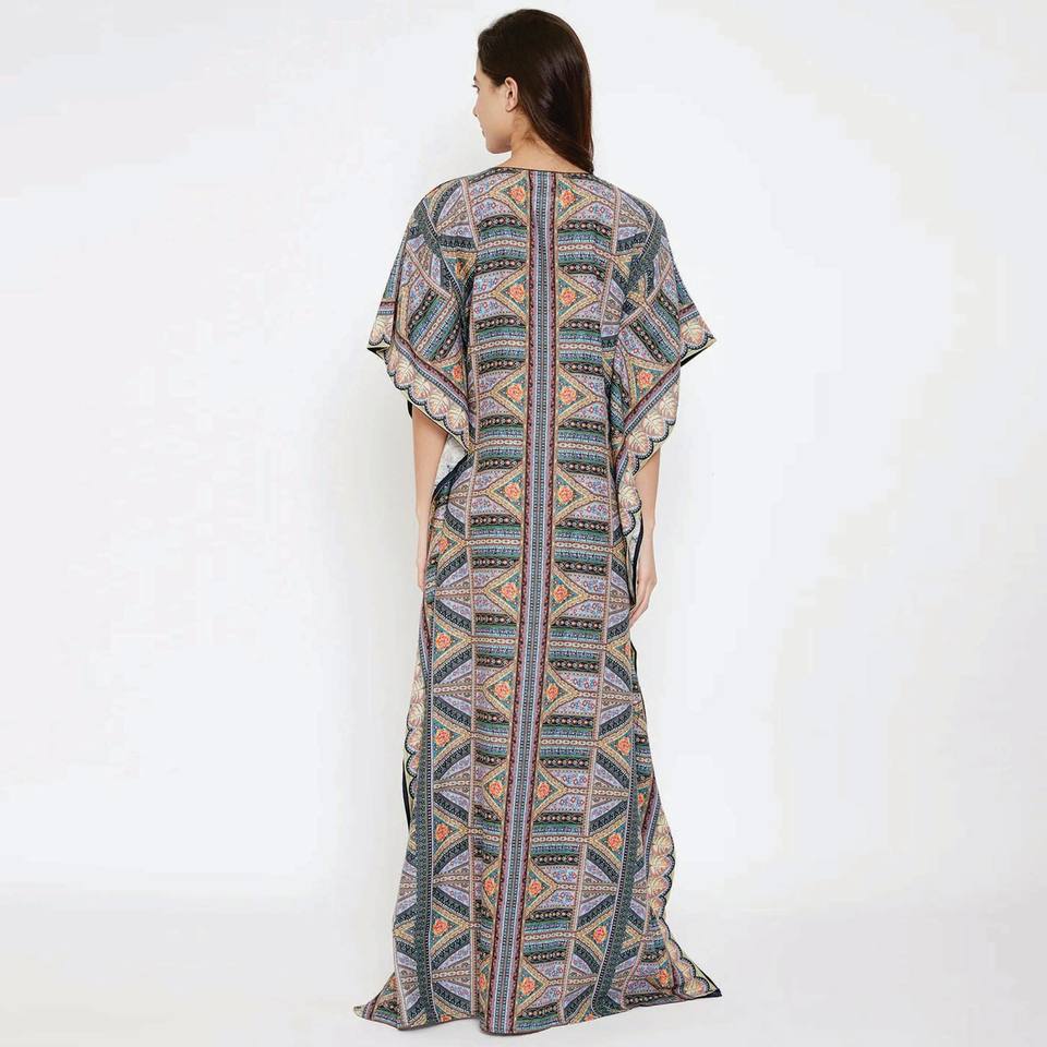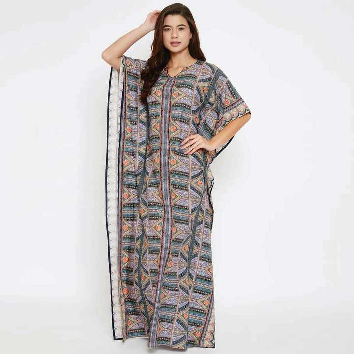 ชุดคาฟตันผ้าฝ้ายผูกเอวครึ่งแขนสวมใส่สบายพอดีกับ100%
